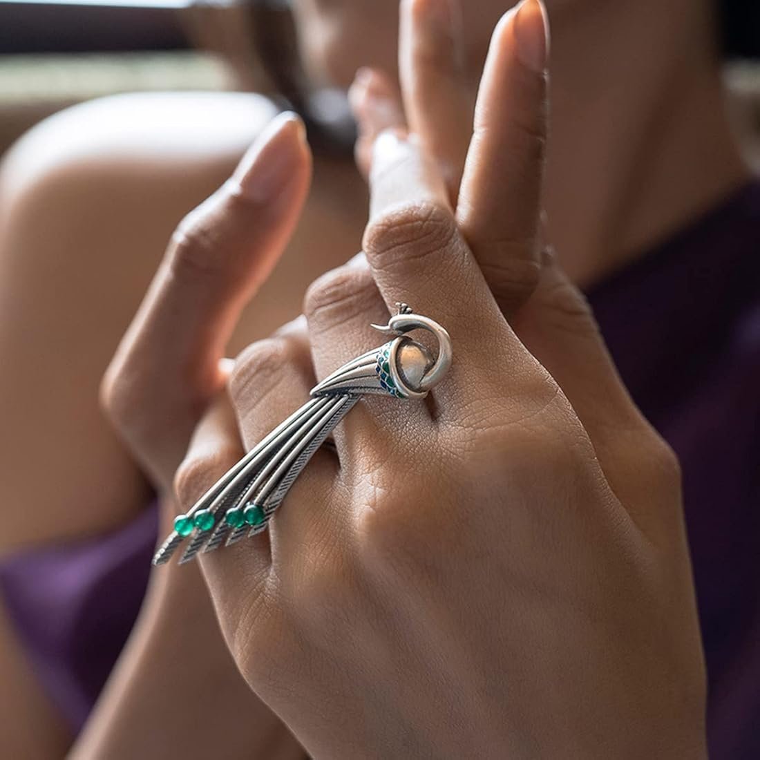 Silver plated brass and quirky peacock ring is surely a conversation starter